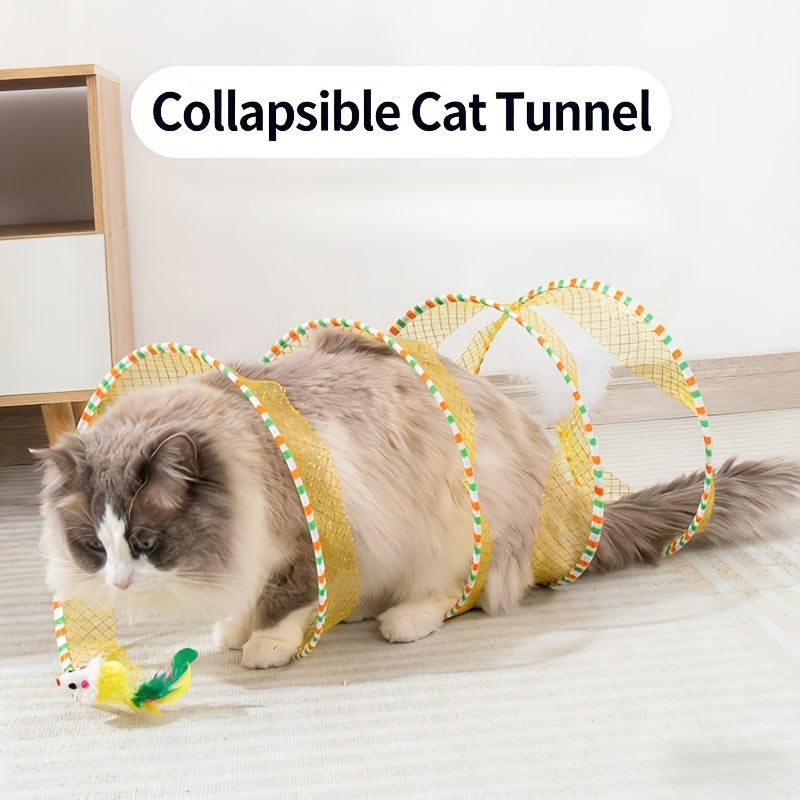 Collapsible Cat Tunnel Toy With Hanging Ball For Indoor Cats