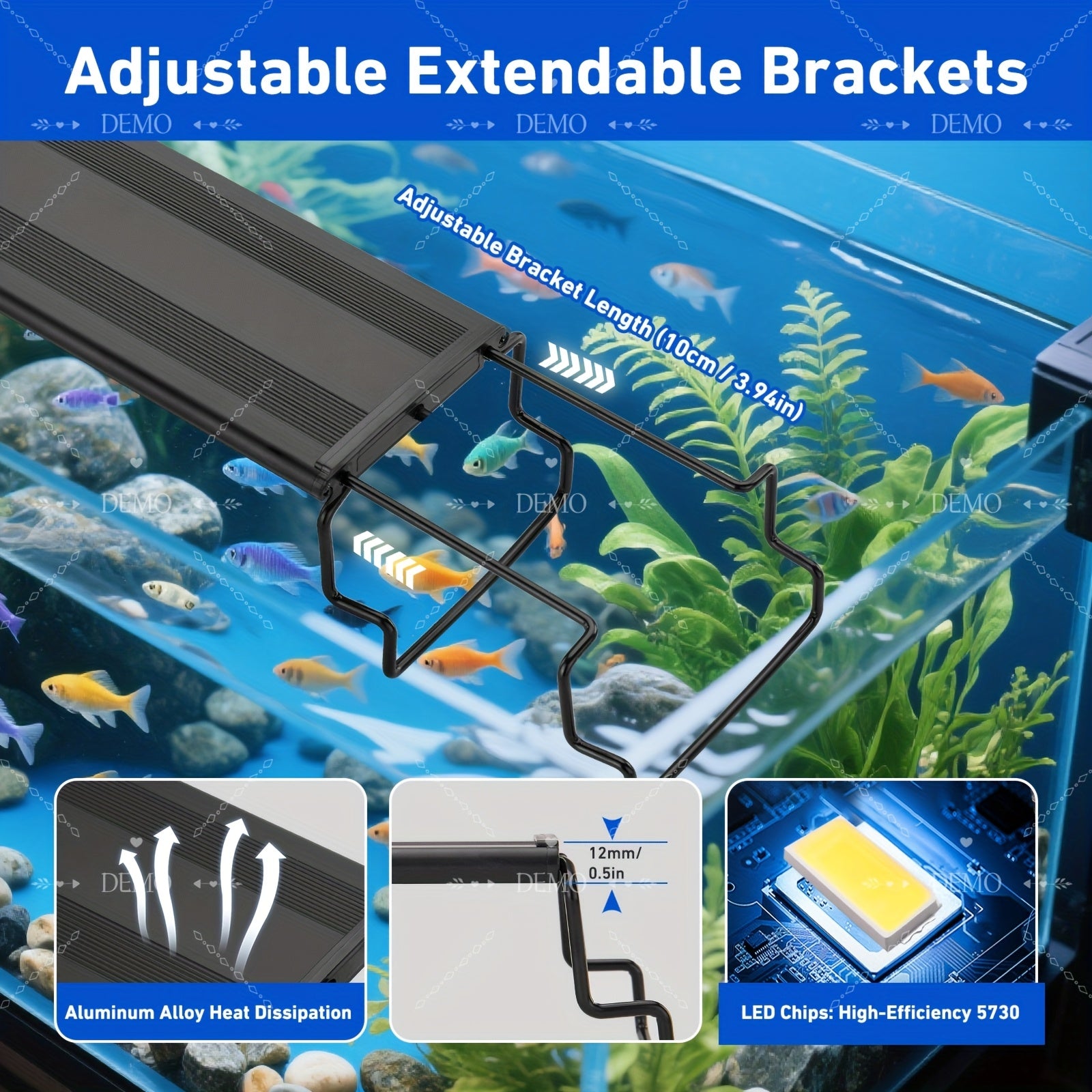 - Extendable brackets for flexible mounting: The adjustable design accommodates a wide range of tank widths and styles, enabling secure placement on most standard glass or acrylic aquariums and ensuring optimal light delivery to your entire tank. The extendable brackets provide repeatable alignment, reduce glare along the water surface, and keep the fixture stable even in high-traffic areas of your setup.